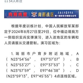 【中缅边境又将响起枪炮声】8月26日,南部战区和云南省政府共同通告称,将于27日到29日在中缅边境组织实兵实弹演习,演习区域见图1,具体通告见图2。